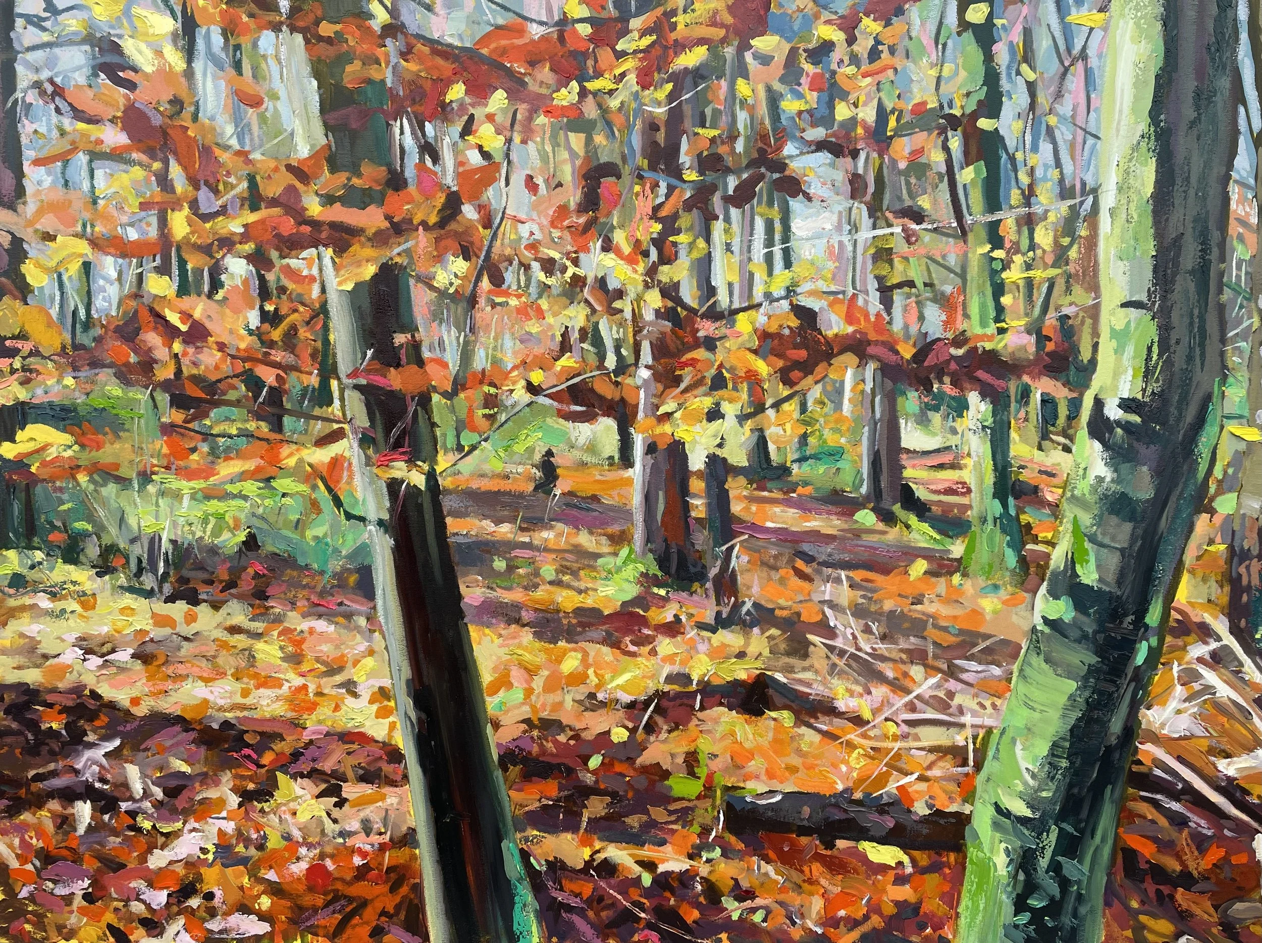 ‘Autumn Woodland’, Acrylic & Oil Paint on Canvas, 91 x 122 cms