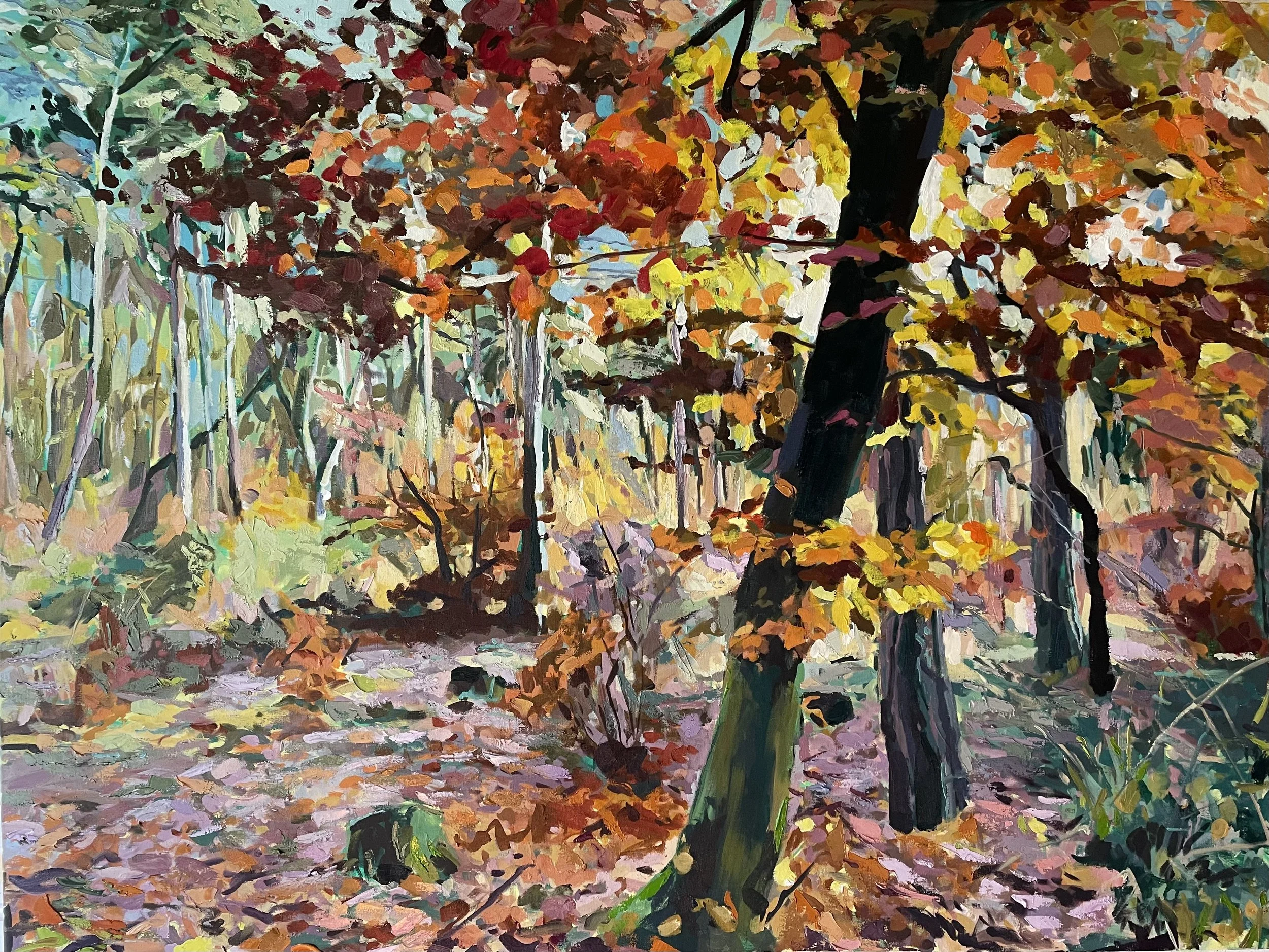 ‘Autumn Woodland II’, Acrylic & Oil Paint on Canvas, 91 x 122 cms